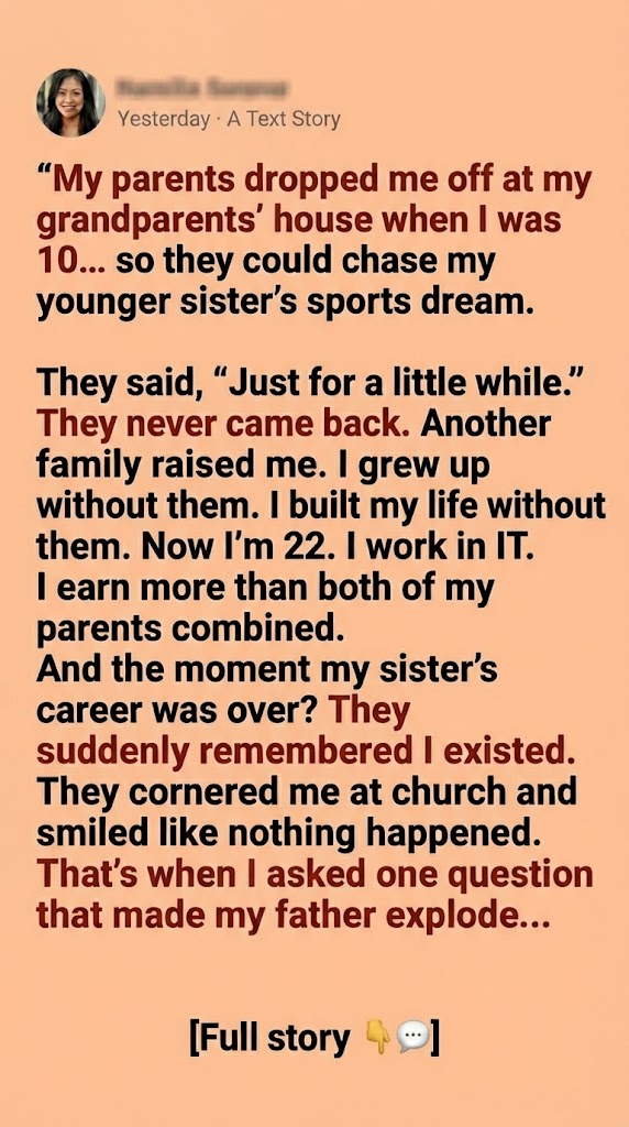 When my grandparents’ health began to fail, my aunt and uncle stepped in and took me home with them. No paperwork. No dramatic announcement. Just an unspoken understanding that someone needed to raise me—and my parents weren’t going to do it.