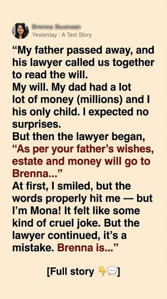 I wasn’t nervous. My dad was a self-made man with millions in assets—properties, investments, accounts I didn’t even fully understand. And I was his only child. We weren’t perfect, but we were close. Or so I thought.