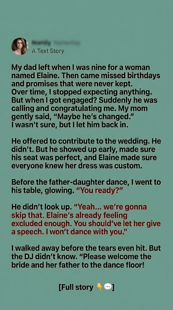 She walked onto the dance floor, took my shaking hands, and smiled through tears. Behind her came my grandfather. Then my uncle. Then my brother. Then my husband stepped in close and whispered, “You were never abandoned. You were protected.”