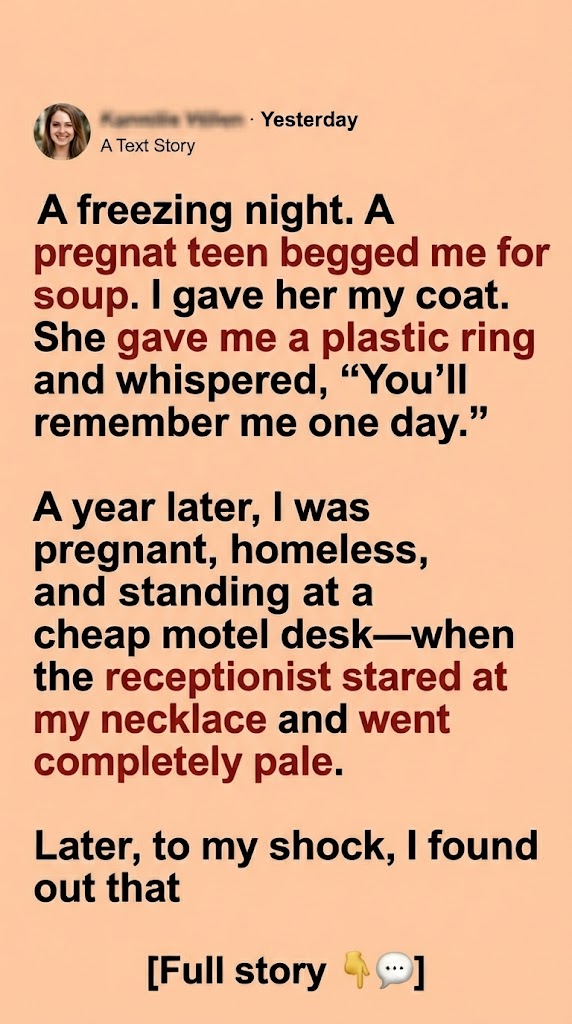A week later, with nowhere else to go and barely any money left, I checked into the cheapest motel near my old neighborhood. The kind of place that smells like stale coffee and bleach, with flickering lights and thin walls.