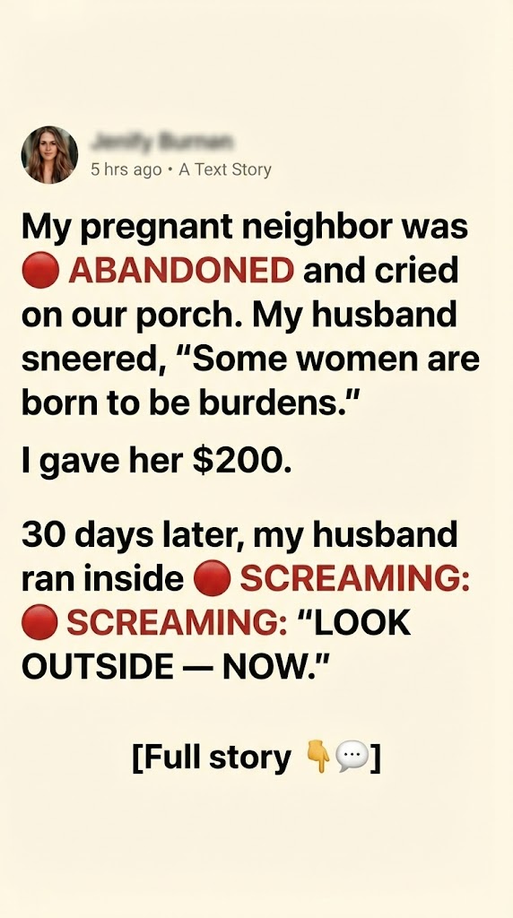 My pregnant neighbor showed up on our porch one rainy evening, shaking and crying so hard she could barely speak.