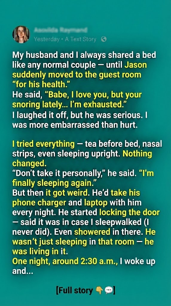 He’d been having panic attacks at night. Chest tightness. Racing thoughts. Fear he couldn’t explain. The guest room wasn’t about comfort — it was about control. About having a place where he could pace, work, distract himself, not feel like he was failing next to me.