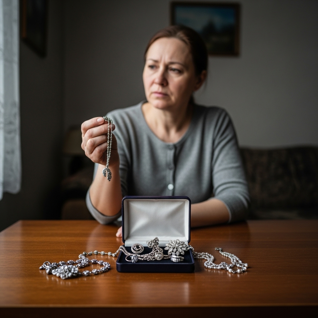 One by one, he examined the pieces. A necklace from a small European designer. A brooch made with real stones. A ring worth more than my car.