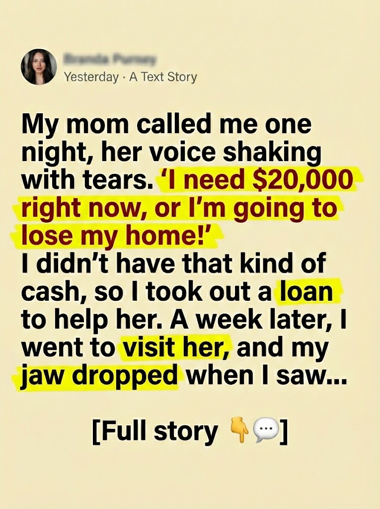 When I transferred the money, she cried again—this time thanking me. She promised she’d explain everything soon. I didn’t press her. I figured it was some emergency mortgage issue or medical bill she was embarrassed about.