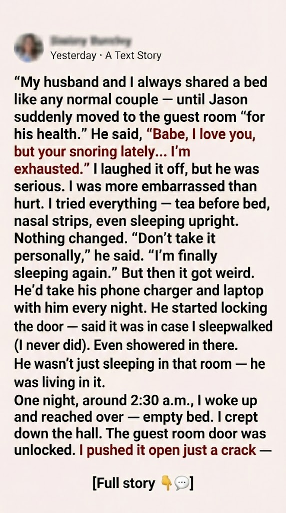 That night, he moved into the guest room—with a packed bag, charger, laptop, and his whole routine. No argument. No real conversation. Just… gone.