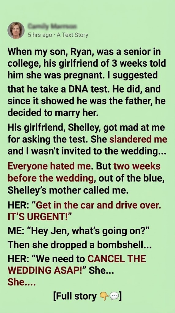 She then dropped a bombshell that left me speechless. “We need to cancel the wedding,” she declared. “I discovered that Shelly has been lying this entire time. I cannot sit by and allow your son’s life to be ruined.”