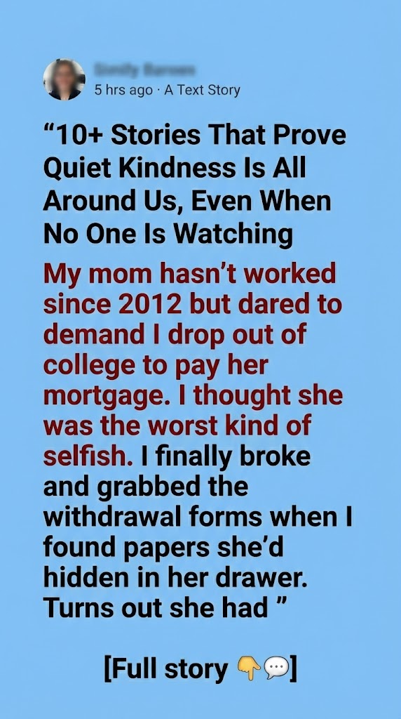 She pressured me constantly to quit school and get a full-time job, ignoring how hard I had worked to get into college. I felt trapped, angry, and convinced my future was falling apart. I even picked up the withdrawal forms because I didn’t see another way.
