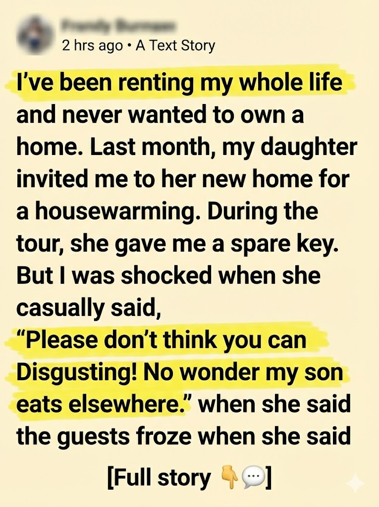 I was heartbroken by the situation but managed to arrange something temporary. Then last month things took a turn and it left me questioning everything. My daughter bought herself a new home and invited me for a housewarming.