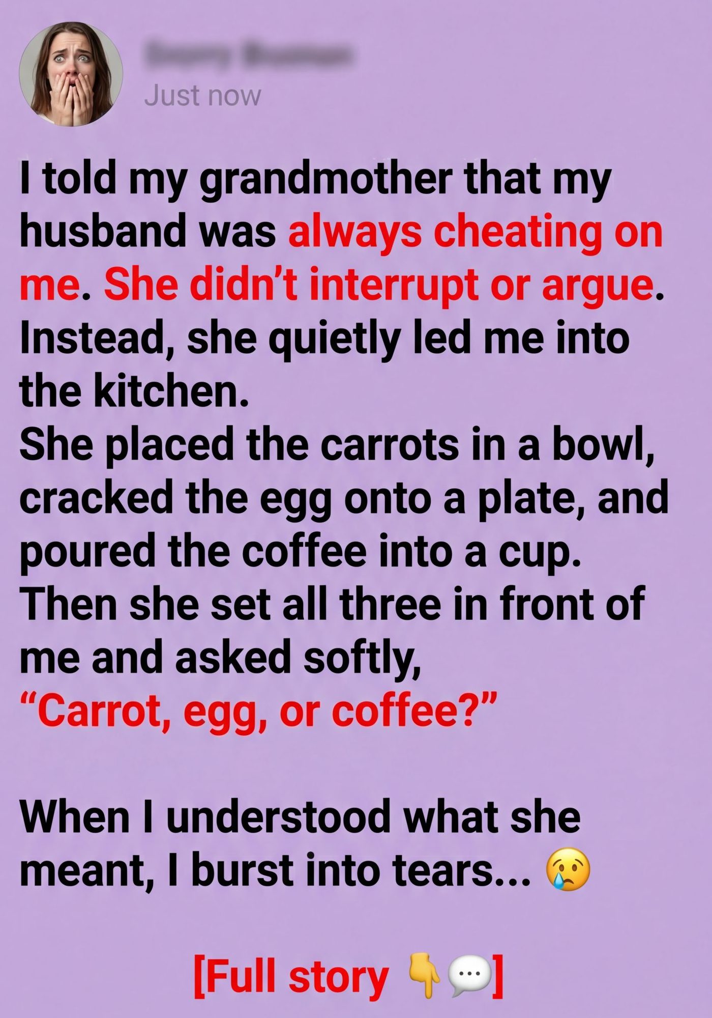 I Told My Grandmother About My Cheating Husband—She Asked Me: Carrot, Egg, or Coffee?”