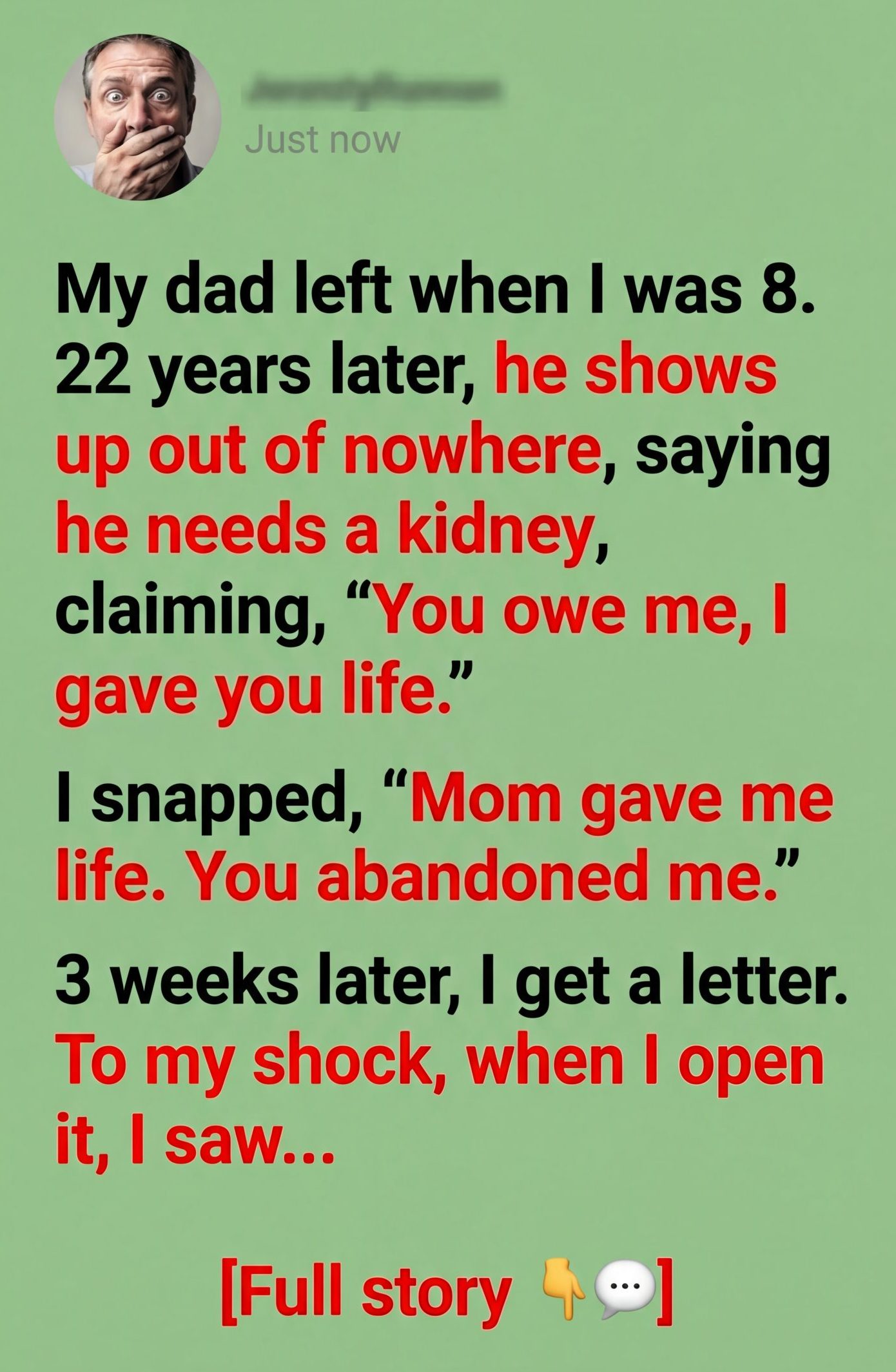 He told me he’d found me through social media. He said he was sick. That his kidneys were failing. That doctors said a transplant was his best chance.