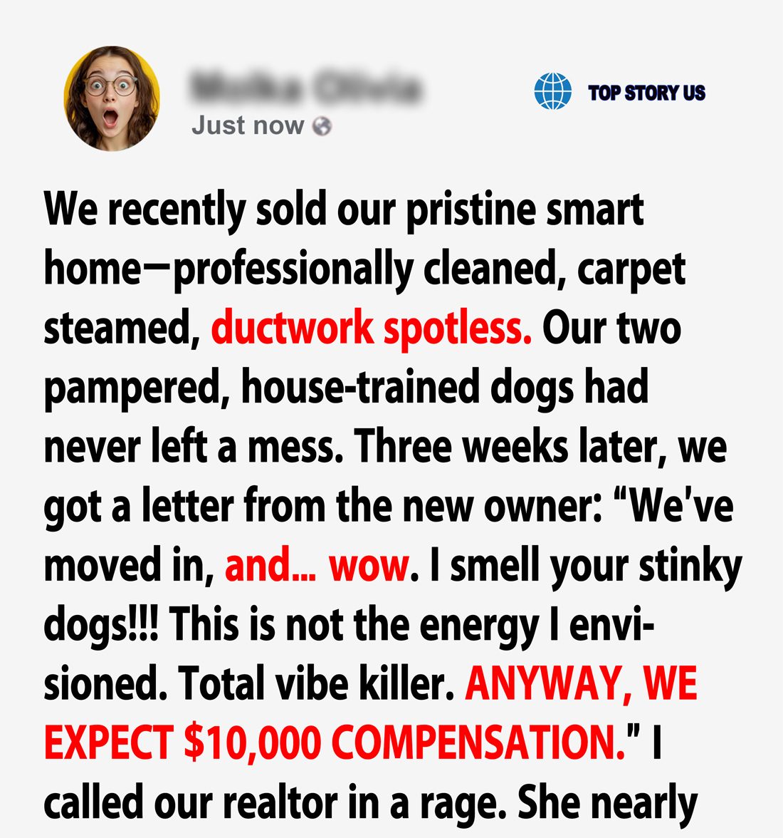 Months later, I ran into her at the grocery store. Frazzled, clutching sage bundles, she muttered, “Sometimes I swear I can still feel… presence.” I smiled, “Maybe next time you’ll think twice before demanding $10K for imaginary dog smells.”