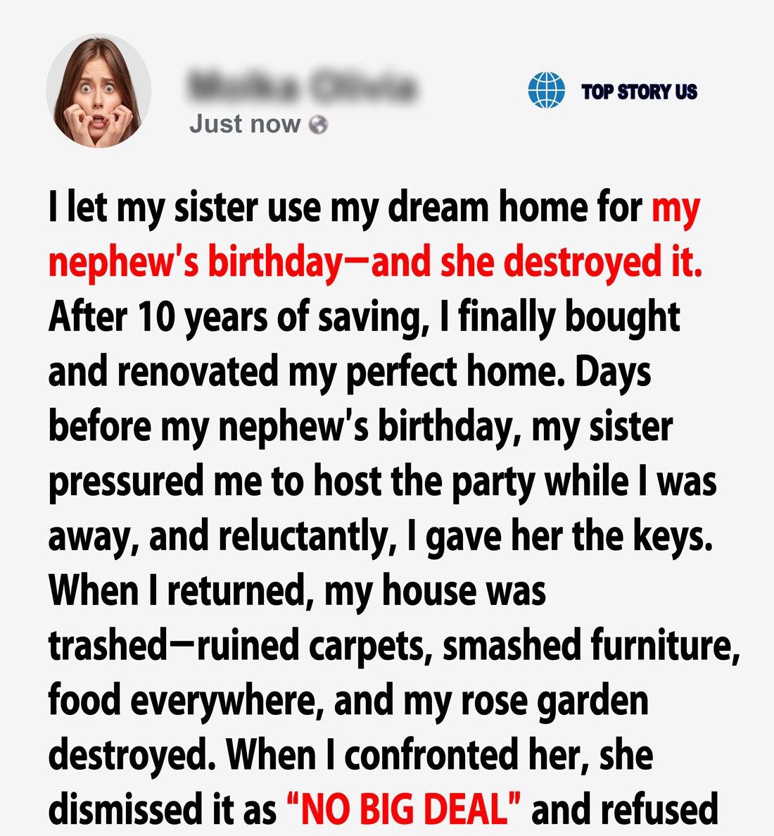 When Anna reluctantly lets her sister borrow her beloved home for her nephew’s birthday, she expects a simple celebration. Instead, she returns to devastation, betrayal, and silence that cuts deeper than any mess. But as the dust settles, Anna discovers the true cost of family, and the strength of reclaiming her sanctuary.