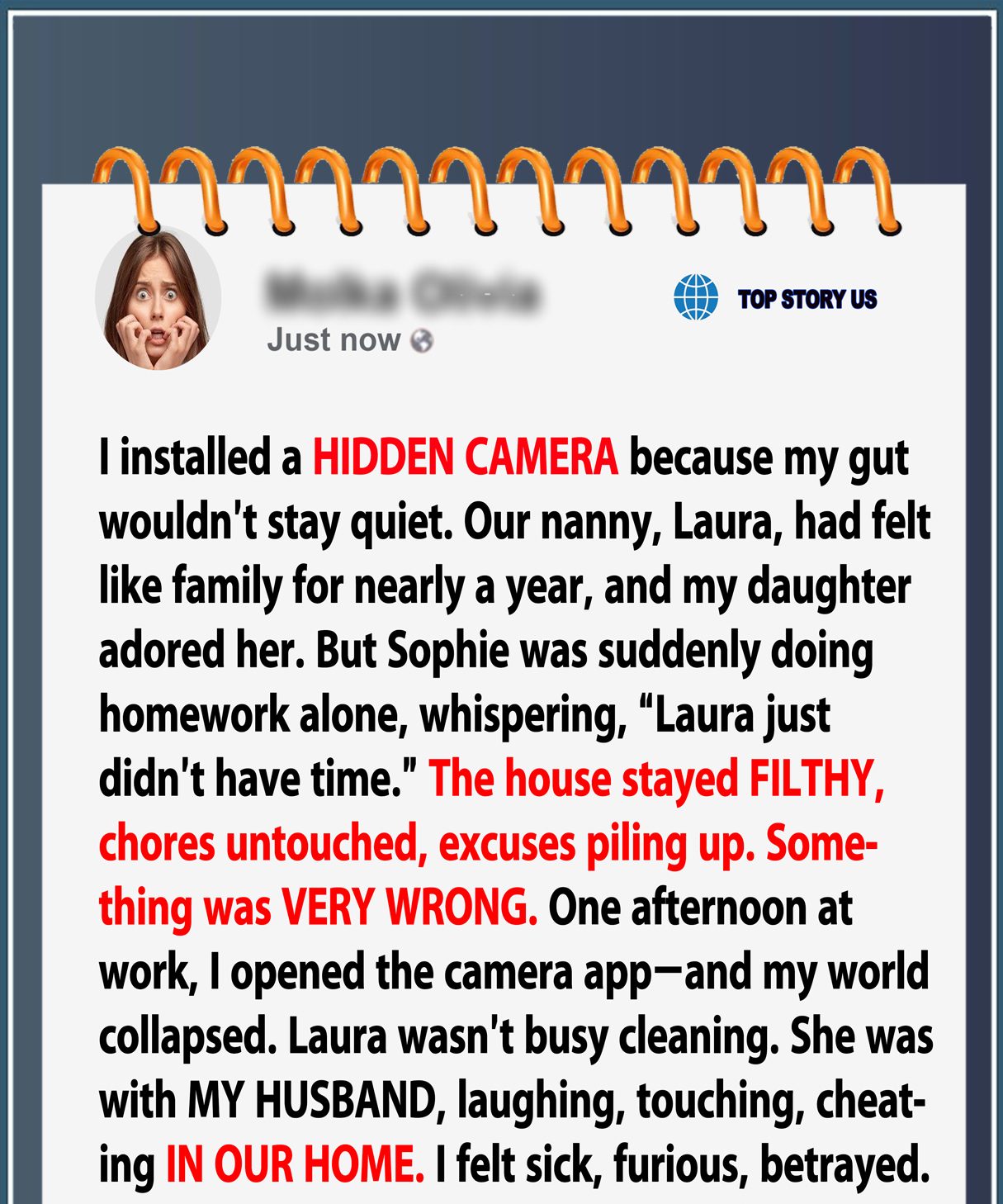 I installed a hidden camera in my living room and caught my husband cheating with our daughter’s nanny. I wanted to scream and confront them. But instead, I smiled, cooked dinner, and announced a week-long business trip. What I did next made sure they’d never forget the consequences of betrayal.