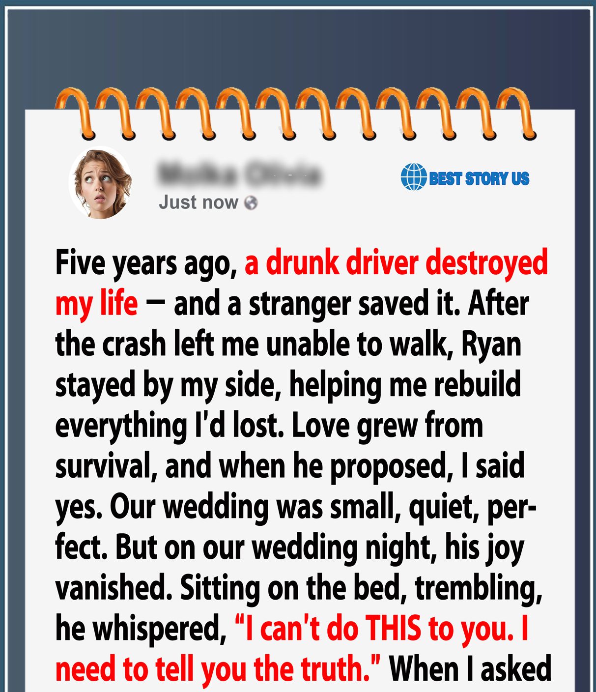 I married the man who saved my life after a drunk driver hit me five years ago. He stayed with me through everything. On our wedding night, he whispered, “It’s time for you to know the truth.” What he revealed shattered everything I thought I knew about the night that changed my life forever.