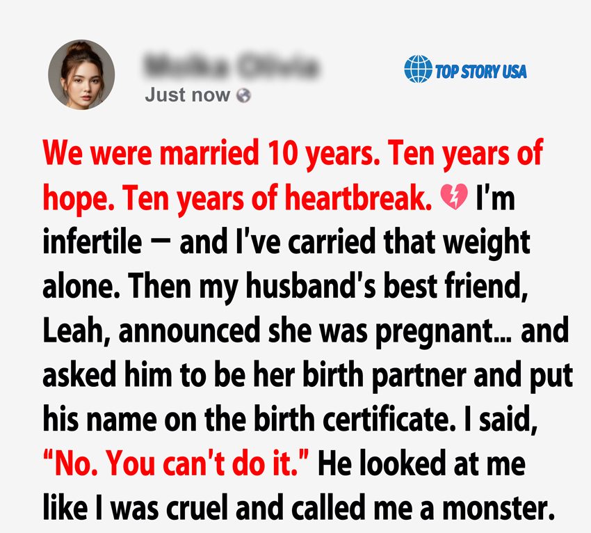 I was stunned. I told my husband, absolutely not. That’s a massive, life-altering decision that affects me, our marriage, and our family. He said I was “being selfish” and “just bitter” because I can’t have children. He told me this might be his only chance to be a father, even if it’s not biological.