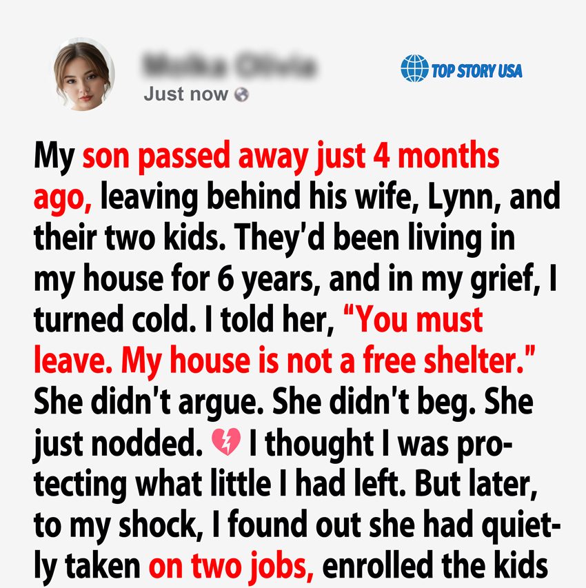 My son Jake (35) d.ied in a car accident four months ago. He left behind his wife, Lynn (31), and their two young sons — Ben (5) and Harry (3). For the past six years, they’d all been living in my home.