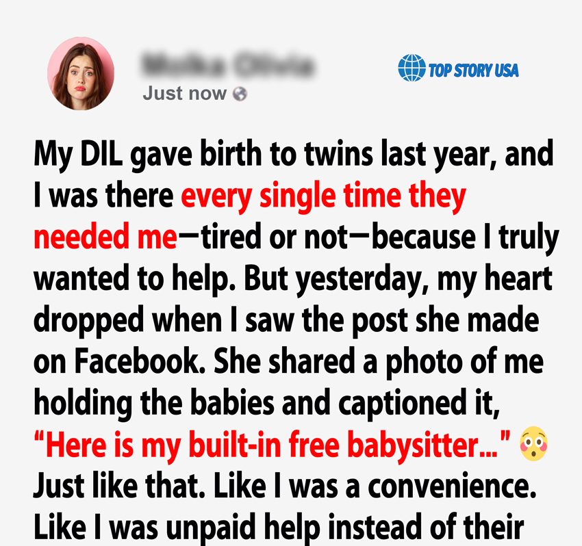 A friend from my club quietly asked if I was really babysitting “every day for free.” She showed me a Facebook post my daughter-in-law had shared: a picture of me holding the twins, both asleep in my arms. I must have dozed off with a diaper still resting on my shoulder.