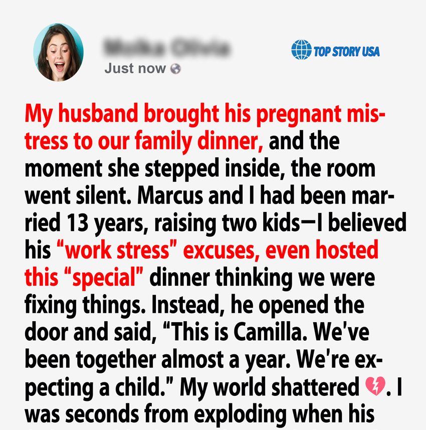 My husband brought his pregnant mistress to our family dinner, thinking he’d won. But he had no idea what was coming, and neither did she.