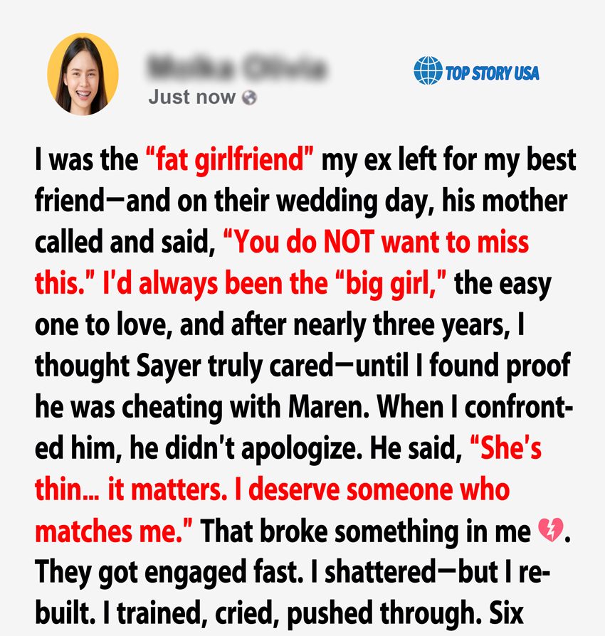 I was the “fat girlfriend” my ex dumped for my best friend—then on their wedding day, his mom called me and said, “You do NOT want to miss this.”