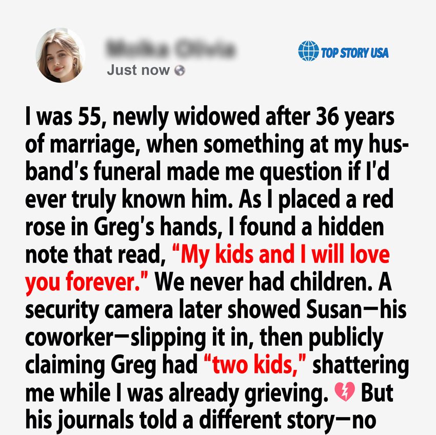 I was 55 years old, newly widowed after 36 years of marriage, when something I found at my husband’s funeral made me question whether I’d ever really known the man I loved.