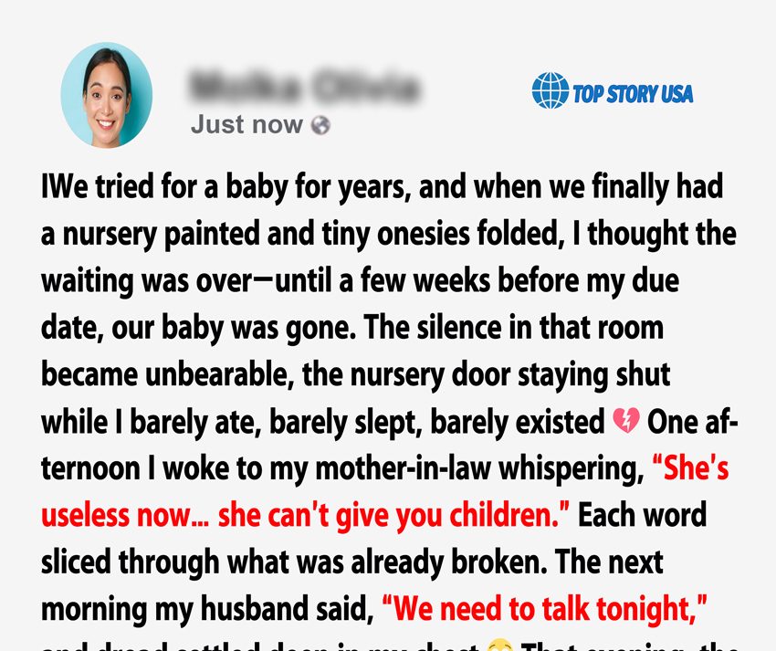 I thought grief would be the hardest thing I’d ever face. Then I heard my mother-in-law tell my husband I was useless because I couldn’t give him children. I spent the next 24 hours preparing for him to leave me. What he handed me made me realize that some people see broken where others see brave.