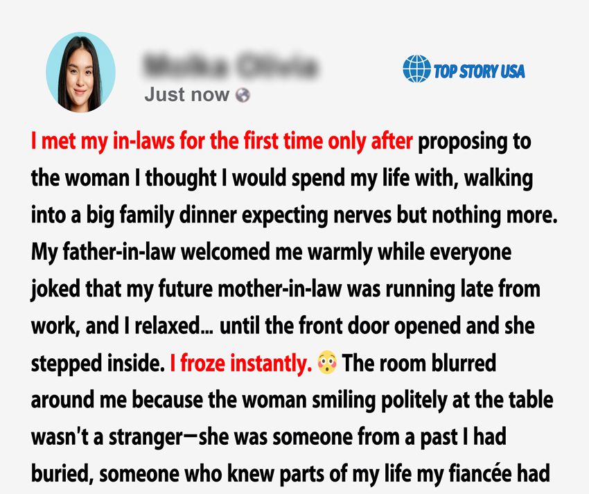 I met my in-laws only after proposing to my now-wife. They threw a big family dinner. My father-in-law greeted me first; my MIL was late from work. When she finally arrived and stepped into the room, I froze, because my future MIL was actually my seatmate from a train ride four years ago—the woman I had one of the deepest conversations of my life with… and then never saw again.