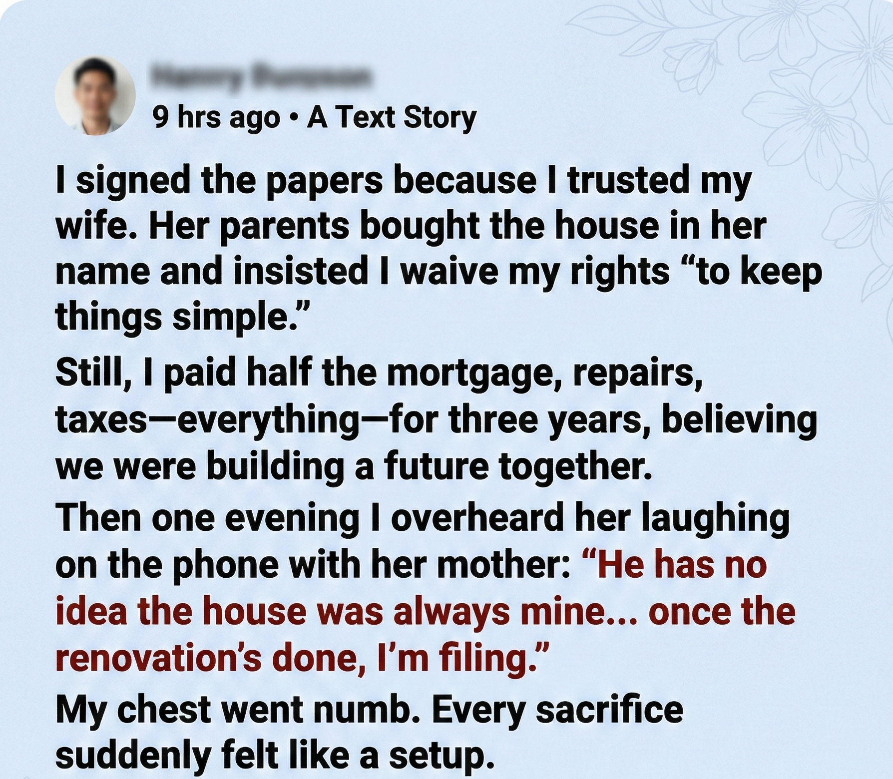 Instead, I hired my own lawyer, reviewed every document carefully, and signed. At the time, I trusted my wife completely. I truly believed we were partners, even if the legal paperwork didn’t reflect that reality.