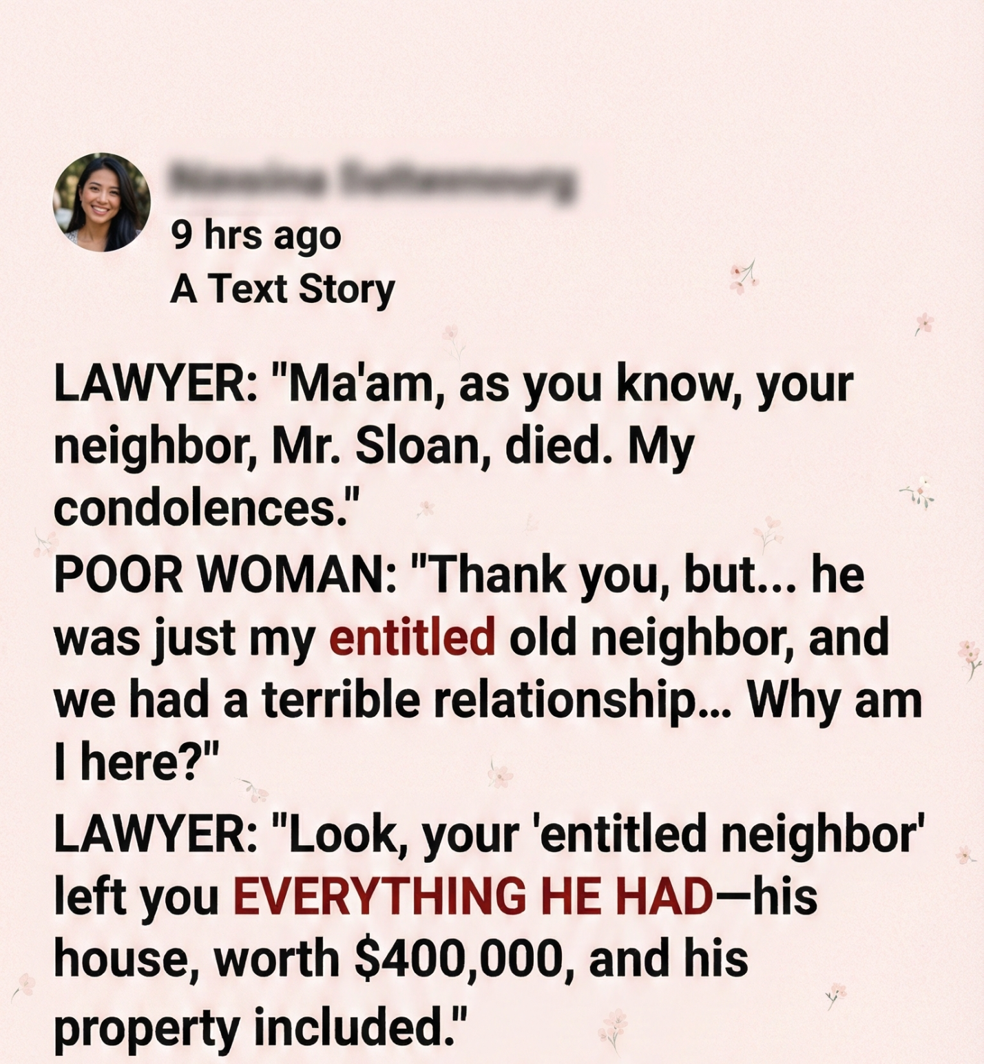 LAWYER: “He couldn’t save her, ma’am. So he spent the last ten years trying to save you. The condition wasn’t about the house. He just wanted to make sure you were safe under a roof for one more year.”