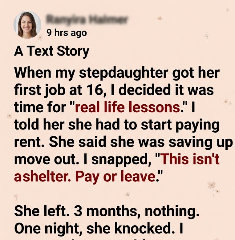 When my stepdaughter turned sixteen and landed her first job, I told myself it was time for “real life lessons.” Her dad worked long hours, money always felt tight, and I was exhausted in that bone-deep way that makes small annoyances feel personal. She talked constantly about saving up, about moving out someday, about not needing anyone. It rubbed me the wrong way, though I never admitted that out loud.