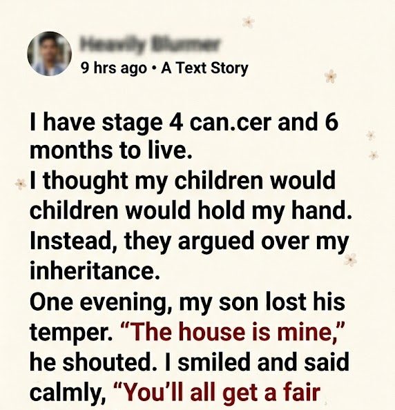 I didn’t want arguments. I didn’t want raised voices in the time I had left. I wanted quiet mornings. Gentle evenings. Dignity.