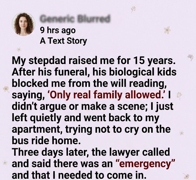 His biological children—people I had lived alongside but never truly known—blocked the doorway to the lawyer’s office. One of them didn’t even look me in the eye when they said it.