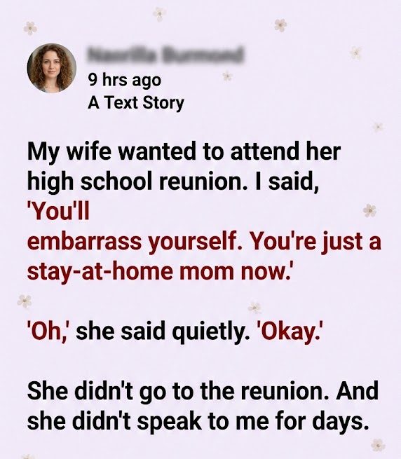 I shrugged, already annoyed for reasons I couldn’t quite name. “Come on, Anna. Everyone else is probably doctors, lawyers, executives. You’ll just embarrass yourself. You’re just a stay-at-home mom now.”
