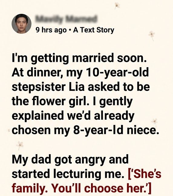 But here’s the thing—I feel cornered over something that wasn’t even an issue until Lia asked. I understand that she’s a child with big feelings. I really do. But my wedding isn’t a participation trophy ceremony, and love doesn’t mean erasing every boundary to keep adults comfortable.