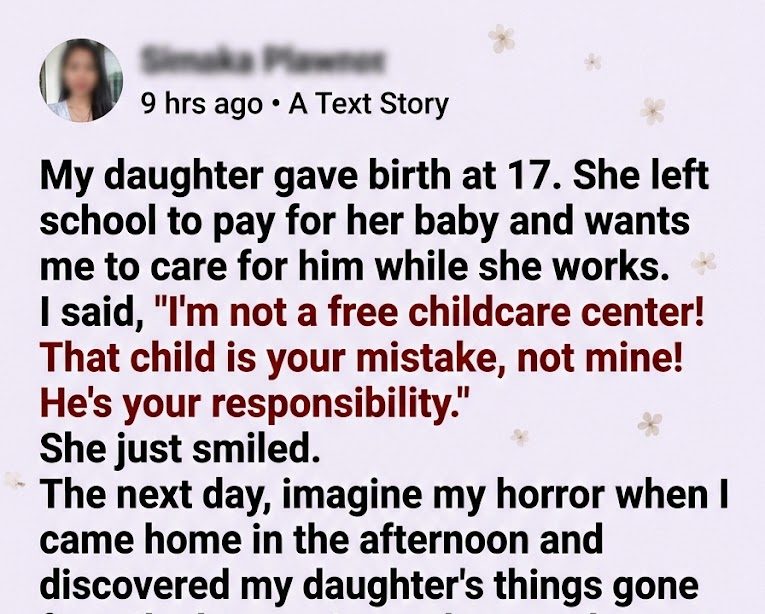 My daughter was only seventeen when she gave birth. Still a child herself, still halfway through school, still figuring out who she was. When she stood in my kitchen holding that tiny baby, her eyes hollow with exhaustion but stubborn with resolve, she told me she was going to leave school and find work. She said she needed me to watch the baby while she worked, just until she got on her feet.