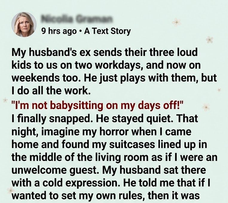 That night, imagine my horror when I came home and found my suitcases lined up in the middle of the living room as if I were an unwelcome guest. My husband sat there with a cold expression. He told me that if I wanted to set my own rules, then it was time for me to go. He claimed the house was his, and that it belonged to his children before it would ever belong to me.
