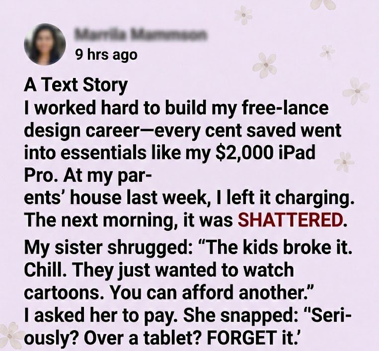 We’d gathered for the holidays. I left my iPad charging in Dad’s study—safe from little hands. The next morning, I walked in, expecting coffee, and instead found my lifeline destroyed.