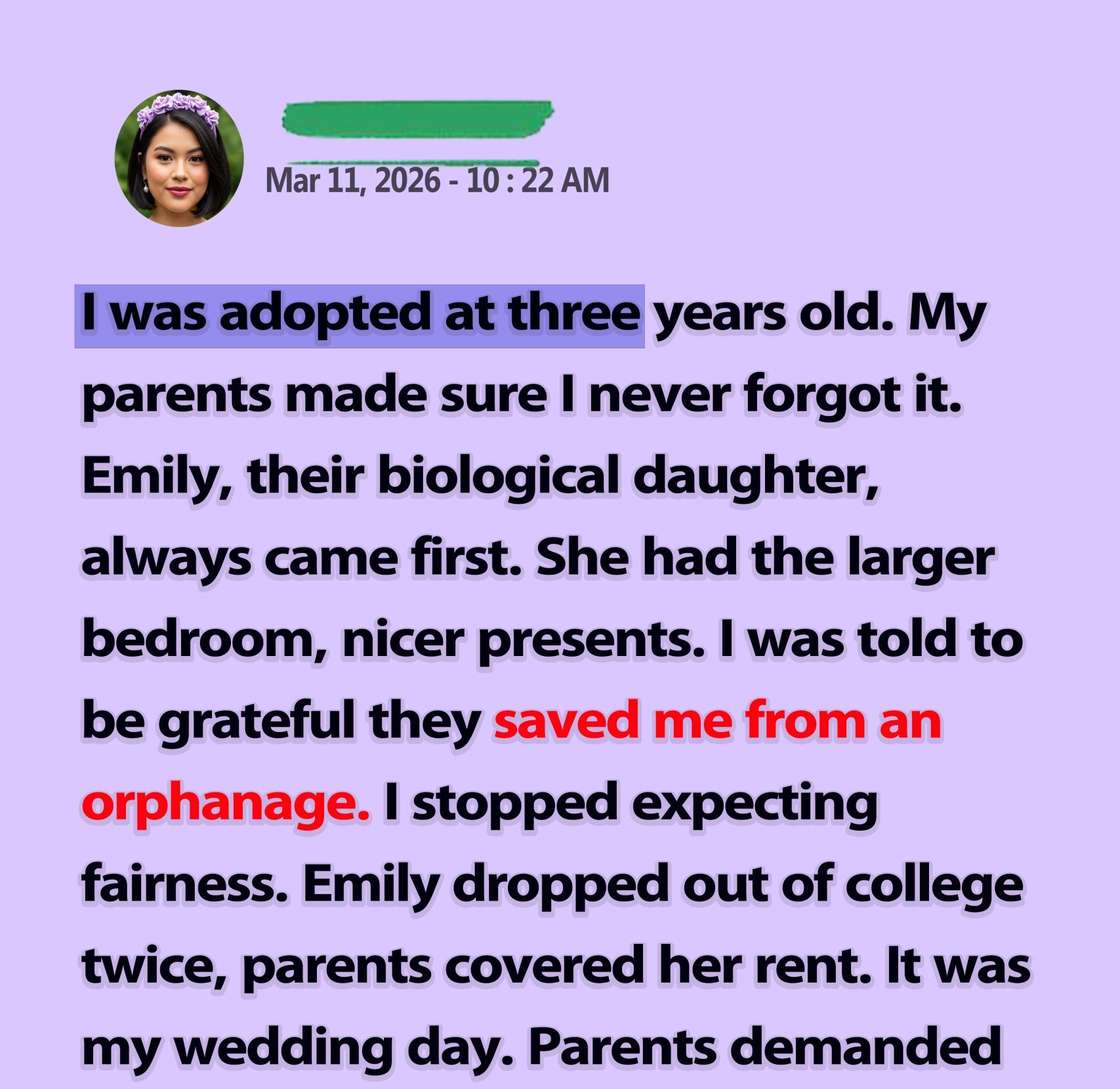 Emily always came first. She had the larger bedroom, the nicer presents, and somehow every birthday revolved around her. I was repeatedly told to be grateful that they had “saved” me from a “terrible” life in an orphanage.