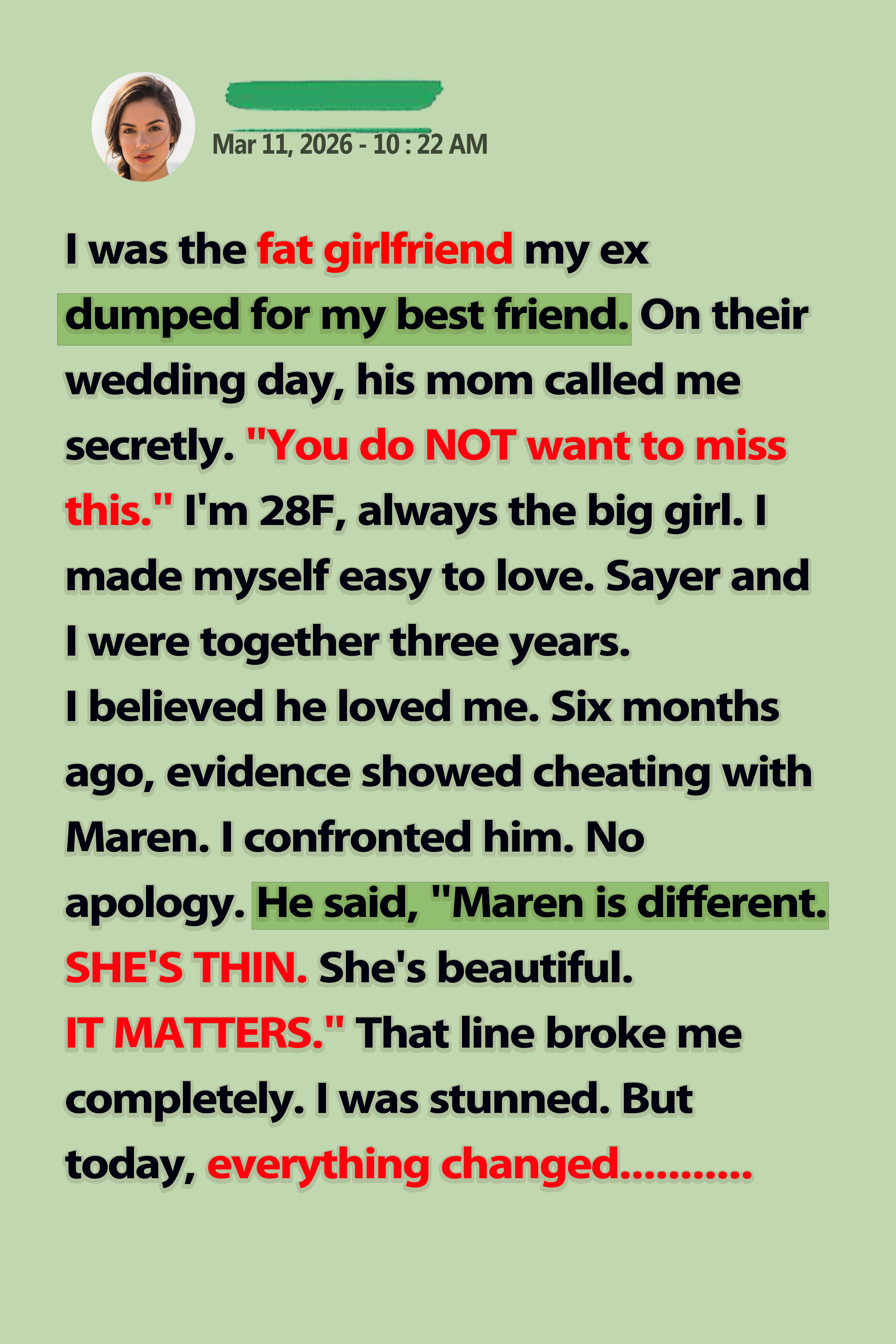 I Was the “Fat Girlfriend” My Ex Dumped for My Best Friend — Then on Their Wedding Day, His Mom Called Me and Said, “You Do NOT Want to Miss This.”