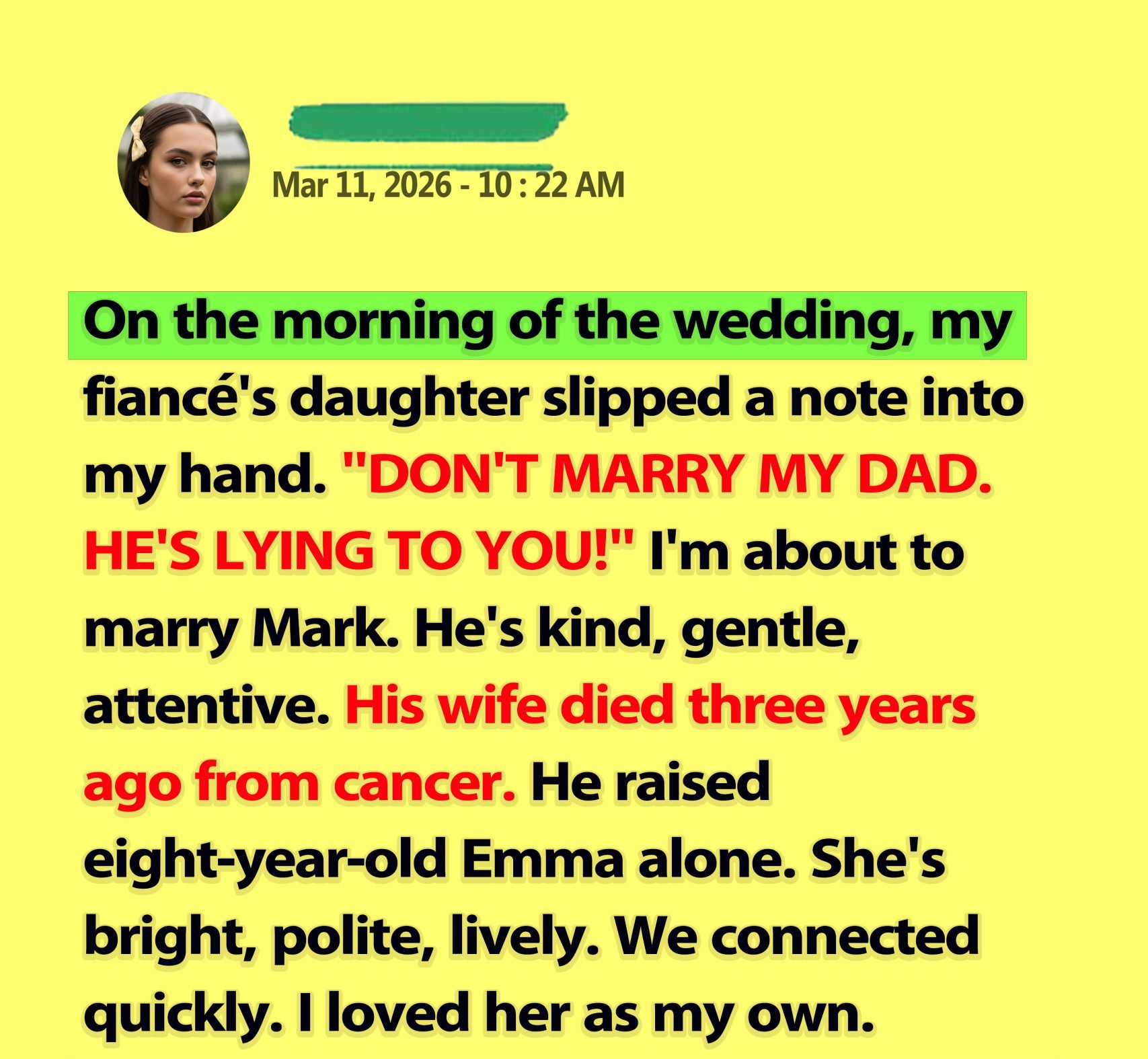 On the morning of my wedding, my fiancé’s daughter slipped a note into my hand.