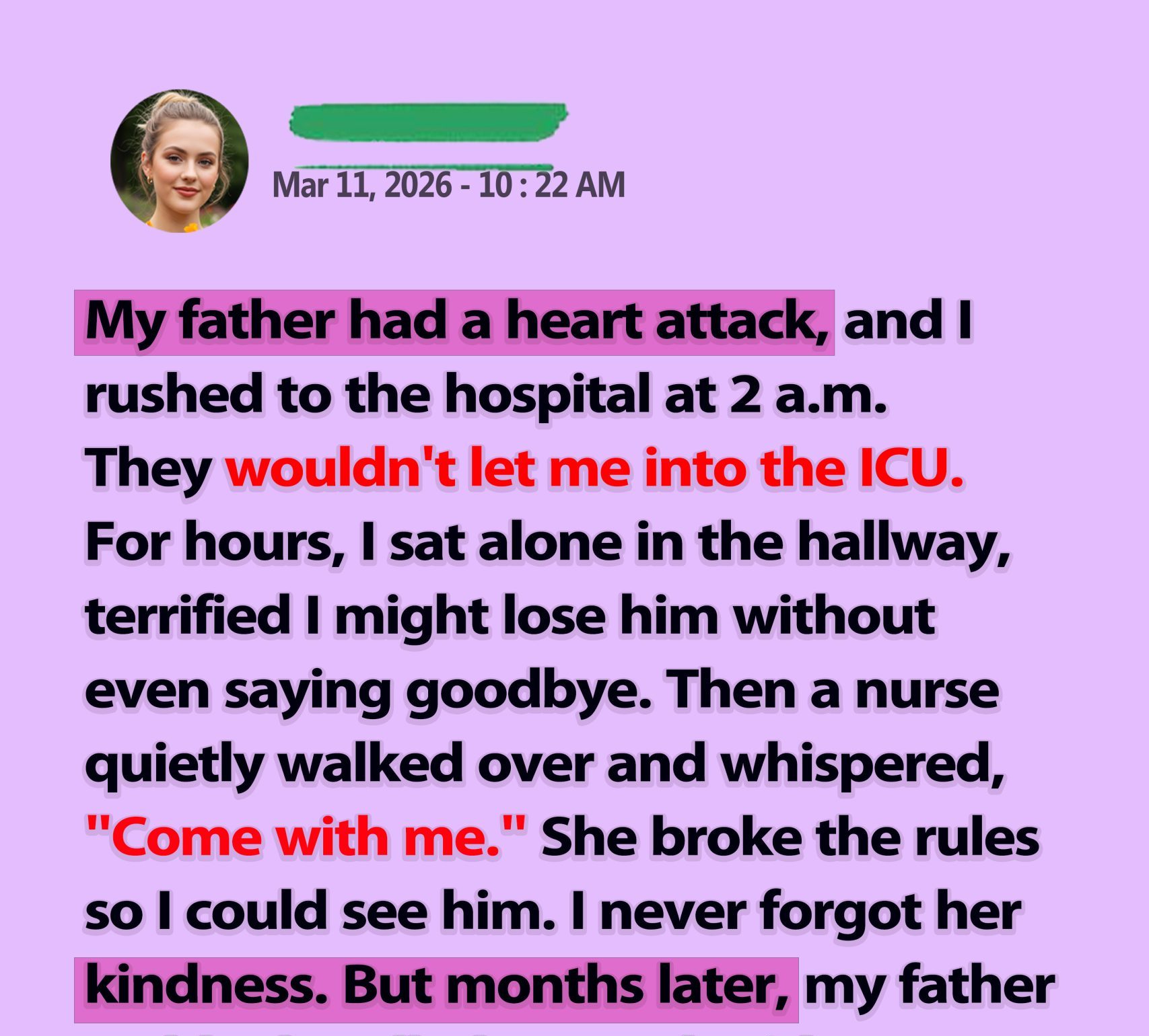 “I’m not supposed to do this,” she whispered as she pushed open the ICU doors.