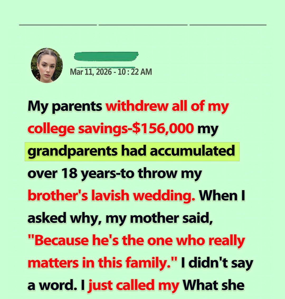 My parents withdrew all of my college savings—$156,000 my grandparents had accumulated over 18 years—to throw my brother’s lavish wedding. When I asked why, my mother said, “Because he’s the one who really matters in this family.” I didn’t say a word. I just called my grandmother. What she did at my brother’s wedding left my whole family speechless.