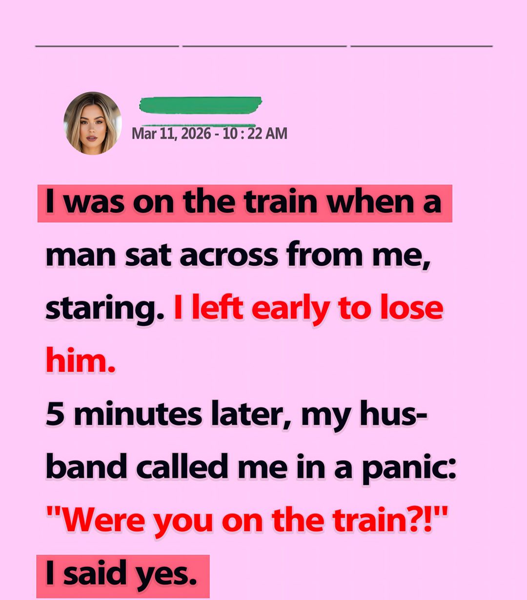 I had finished work early and decided to take the train home like I usually did. The station was crowded, the familiar sound of announcements echoing through the platform while people hurried past with their bags and phones in their hands.