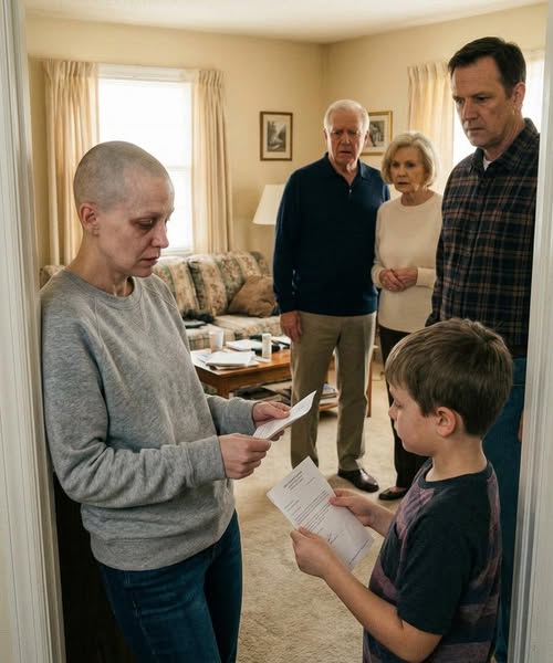 I pushed the blanket off my lap, even though the room tilted when I moved too fast. “You walked into my house and asked a woman in chemo to risk her credit for a car you don’t need.”