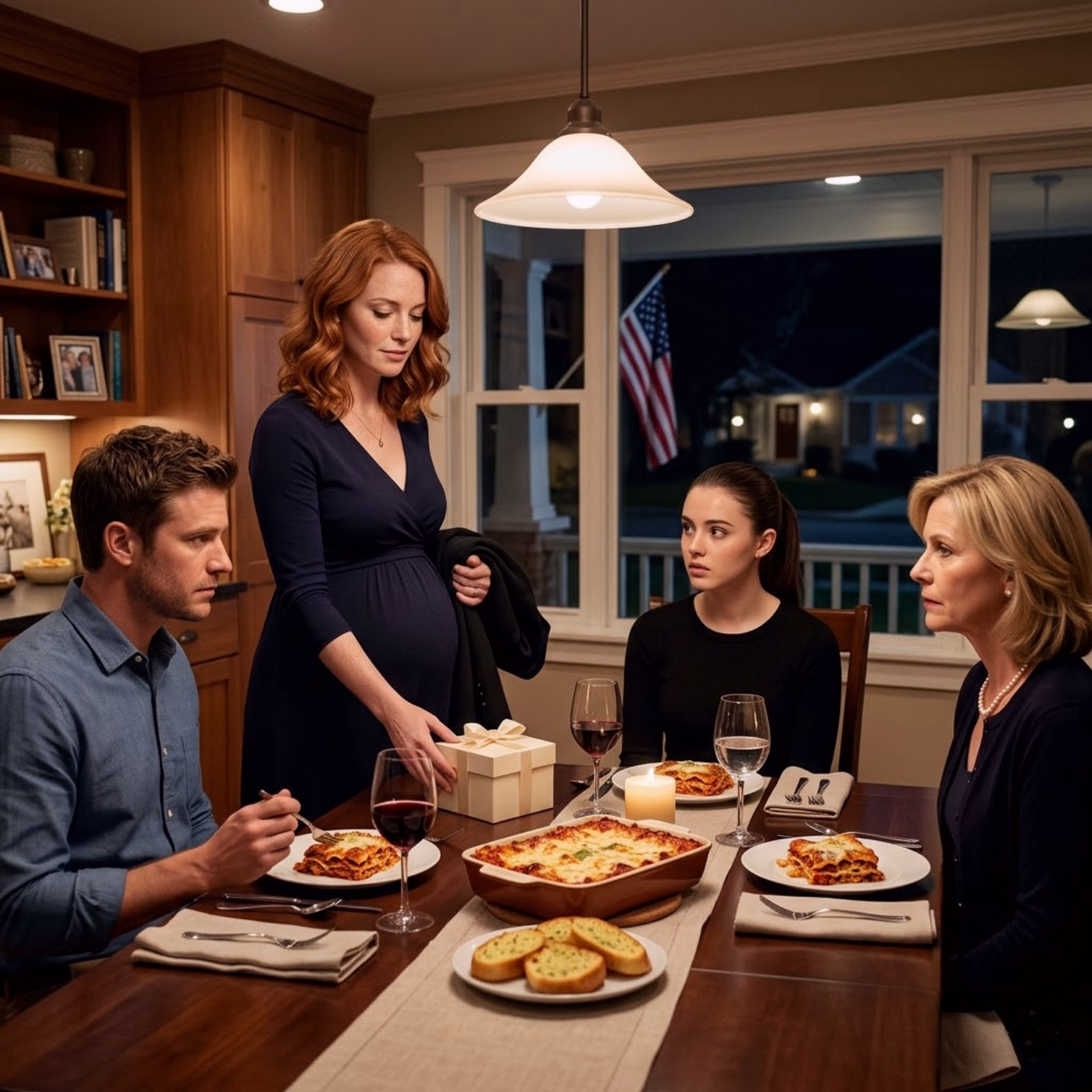 My parents arrived first. My father hugged me and said I looked healthy, which in his language was close enough to beautiful. My mother floated through the kitchen as though she were inspecting a property she might purchase, straightening a fork that didn’t need straightening, wiping an already clean counter, asking if I had been sleeping enough. Then Garrett’s family came his mother, quiet and warm as always, and his younger brother Wesley, who mostly communicated through a rotating set of shrugs and polite nods and who looked as if all family gatherings were punishments handed down by a small local court.