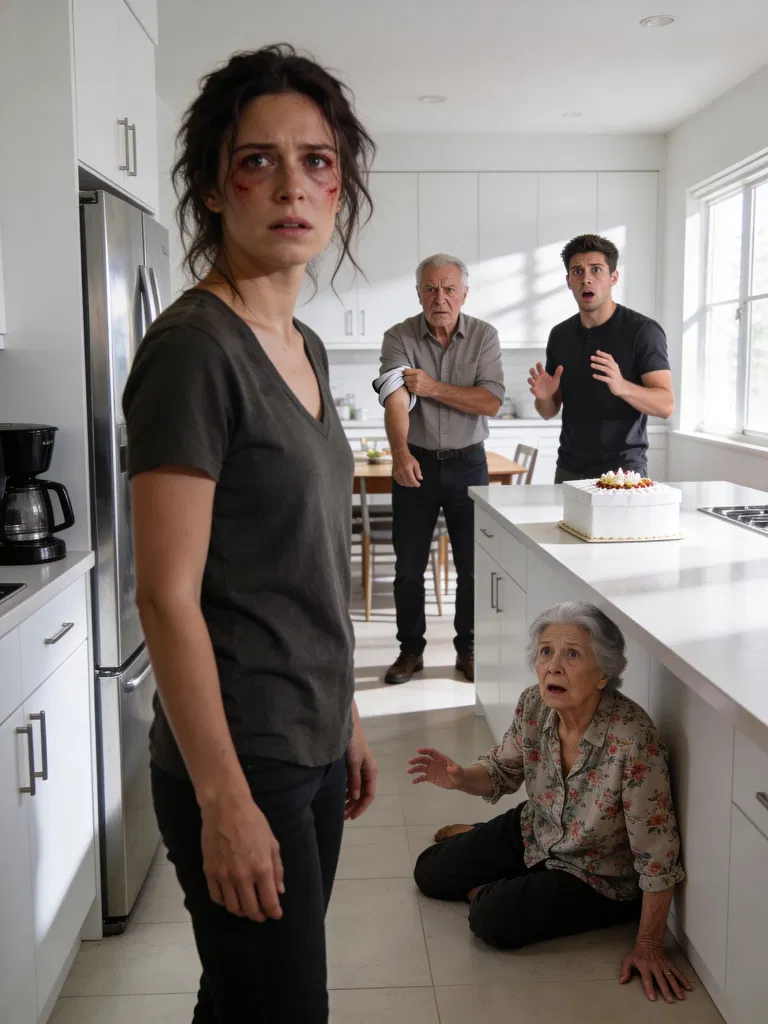 My father, Thomas Whitaker, had barely stepped through the front door before the smile disappeared from his face completely. He had arrived holding a white bakery box with my favorite strawberry shortcake, ready to celebrate my thirty second birthday, but instead he found me standing in the kitchen trying to hide purple marks along my cheekbone and jaw.