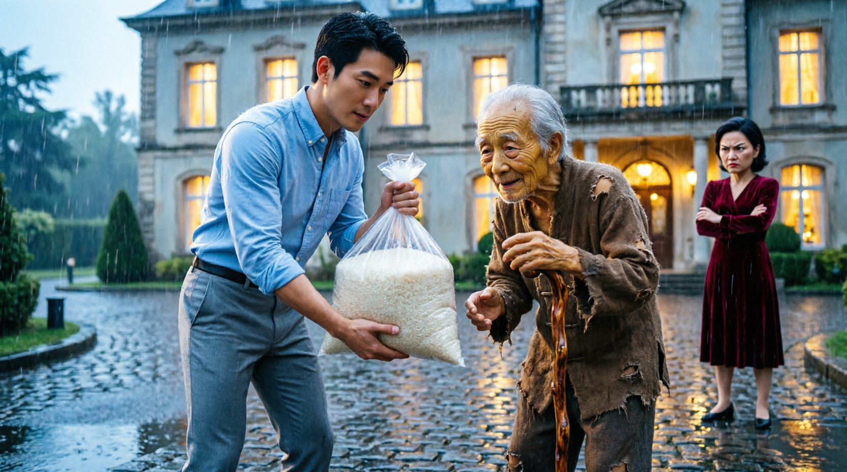 He opened the car trunk, took out a bag of instant noodles, and placed it in her hands before gently but firmly guiding her toward the gate.
