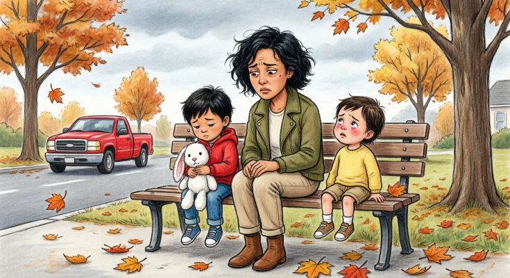At the time, all I knew was that she had sat on the far end of our bench ten minutes before the truck appeared, pretending to rummage in a canvas tote while she studied my girls’ too-thin jackets, my split lip, and the way I checked the parking lot every time an engine turned over.