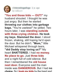 “You and those kids — OUT!” my husband screamed, his face red with rage. At first, I thought it was just another one of his temper tantrums, one that would pass like always. But this time was different. He began tearing our clothes from the closets, shoving them into garbage bags, his voice venomous: “You’re useless!”