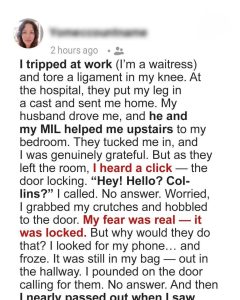 Then I got hurt at work — torn ligament, six weeks of recovery. Collins was sweet at first, fluffing pillows and promising to take care of me. But the next day, I woke to a locked door. A paper slid under it read: “Interim Home Contribution Agreement,” listing chores, restrictions, and rent once I healed. It was signed by Collins and Jenna. A pen lay beside it, waiting for mine.