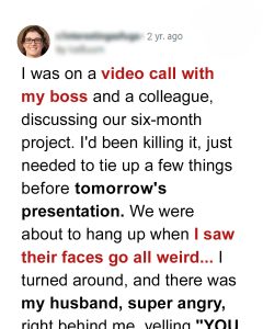 When Amanda’s husband, Chris, interrupted a critical video call, she knew it was time to end things. But things only got worse when he showed up at an official meeting the next day and made a show in front of very important people.
